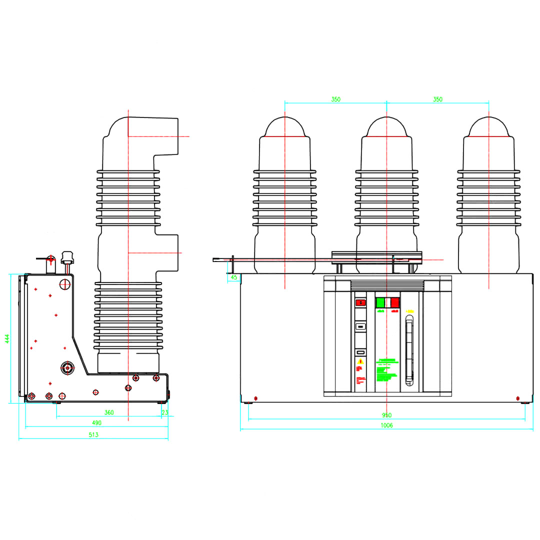 Obwód przewodzący jest podzielony na izolowaną postać cylindra (instalowana jest interrut próżniowa w izolowanym cylindrze) i instalowana jest forma próżniowa (przenikanie próżniowe w żywicy epoksydowej).