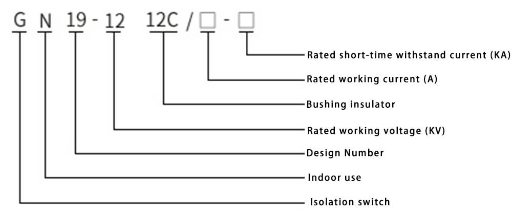 Ta seria przełączników izolacyjnych jest typem trzypolesowym, który składa się z podwozia, obrotowego wału, dźwigni, izolatora filarzy porcelany, noża i tablicy okablowania. Obracający się wałek jest ułożony na dolnej ramie, na której przyspawane są trzy pary dźwigni, a dźwignie przechodzą przez izolinę porcelanową i naszyjnik noża. Obracający się wał rozciąga się z ramy podstawowej, a każdy odcinek obracającego się wału można połączyć z mechanizmem operacyjnym.