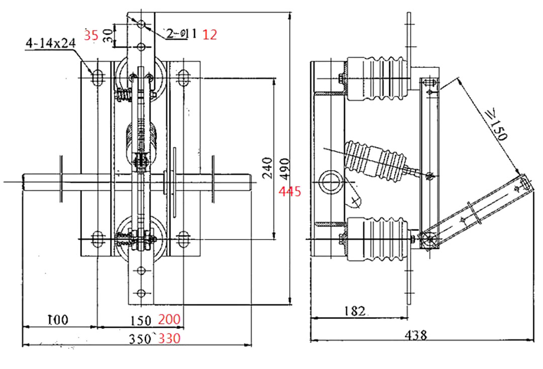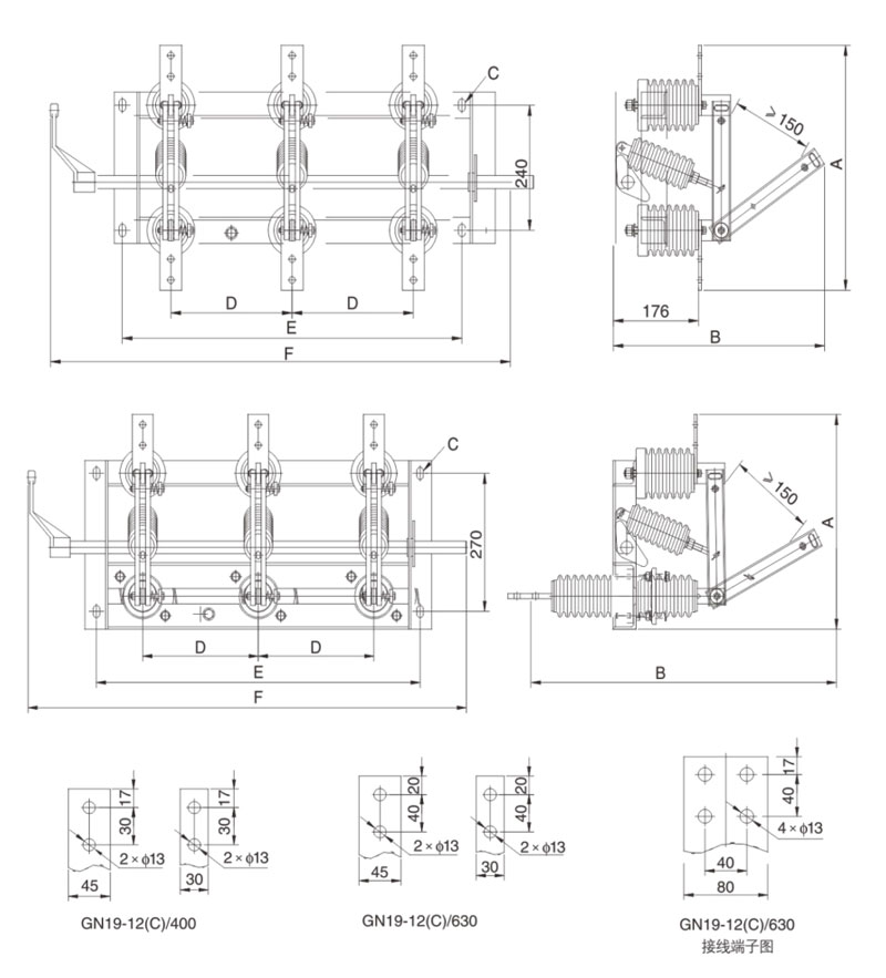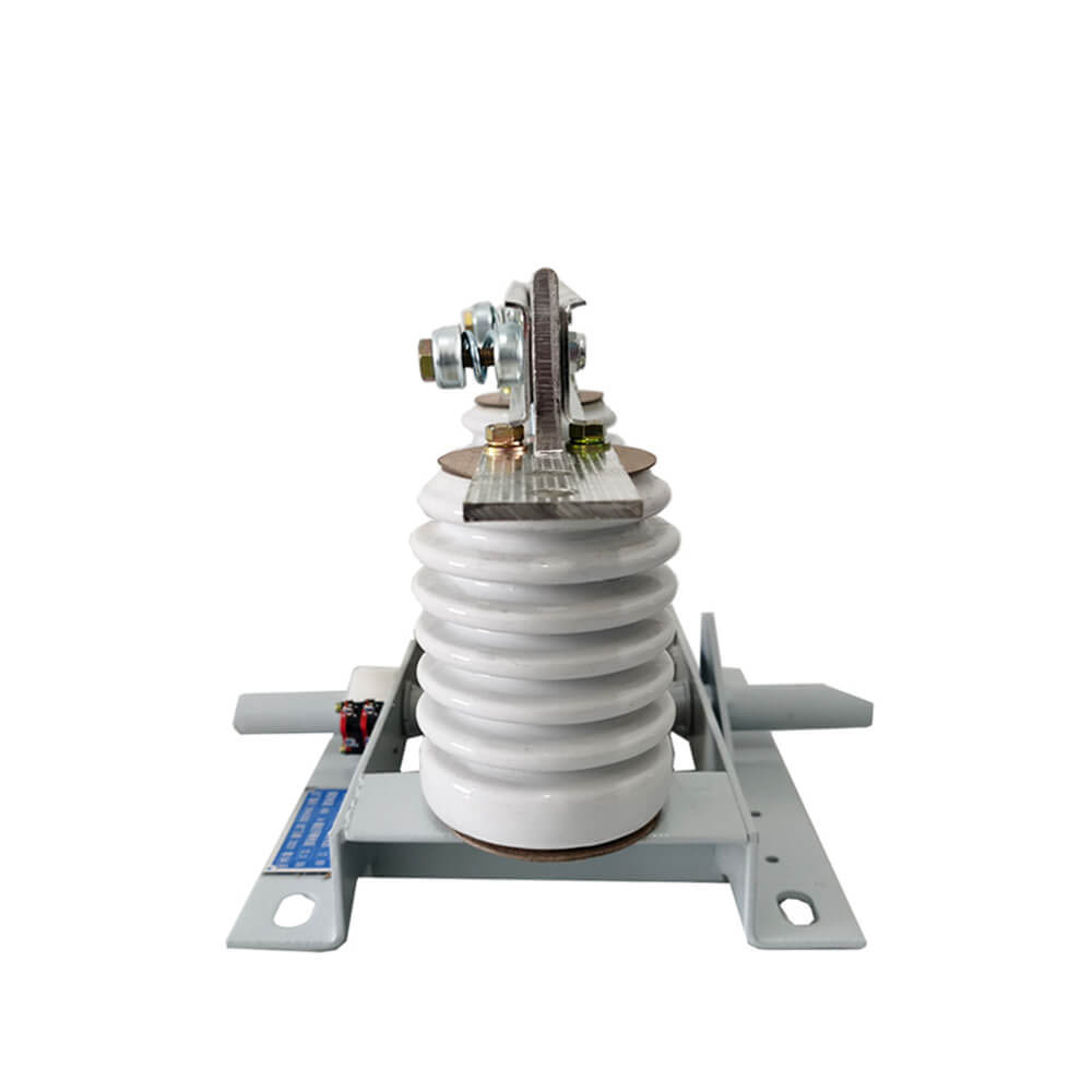 Przewódka przewodząca GN19-12/400, 630, 1000, 1250 typu odłączającego się jest przymocowana do podstawy przez dwa izolatory filarowe dla każdej fazy. (GN19-12C/400, 630, 1000, 1250 Typ ma jeden izolator filarowy i jeden izolator obudowy porcelanowej.) Trzy fazy są instalowane równolegle, a część przewodząca składa się ze statycznych kontaktów noży kontaktowych i uchwytów kontaktowych (lub prętów przewodzących). Każda faza noża kontaktowego jest podłączona do środka izolatora wiązania, izolatora wiązania i zainstalowanej na podstawie podłączonego wrzeciona. Wrzeciono jest podłączone do pręta łączącego (dostarczany przez użytkownika) i mechanizmu ruchomego typu CS6-1 przez uchwyt. Połączający nóż kontaktowy składa się z dwóch szczelinowych płytek miedzianych, co nie tylko zwiększa obszar rozpraszania ciepła noża kontaktowego w celu obniżenia dolnej temperatury, ale także poprawia wytrzymałość mechaniczną noża kontaktowego, tak że ulepszona jest dynamiczna stabilność przełącznika. Jeden koniec noża kontaktowego jest zamontowany na bloku styku (lub na pręcie przewodzącym) przez śrubę (samochód Shaw). GN19-12/1000, 1250 w kontakcie z instalacją magnetycznej płyty blokującej, pLus Purpose magnetycznej płytki blokującej jest to, że gdy duży prąd zwarciowy w celu zwiększenia noża kontaktowego dwóch rowków między | atrakcja. GN19-12/400, 630 przełączniki odłączające mają niewielki limit przez prąd, więc nie ma potrzeby dodawania magnetycznej płyty blokującej.