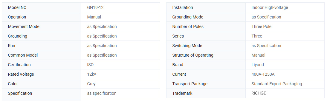 Odłączniki wewnętrzne wysokiego napięcia serii GN19-12, 12C (zwane dalej rozłącznikami) są urządzeniami wnętrzowymi o napięciu znamionowym 12kV, trójfazowym AC 60 Hz, i służą do rozdzielania i zamykania obwodów w stanie napięcia i bez obciążenia.