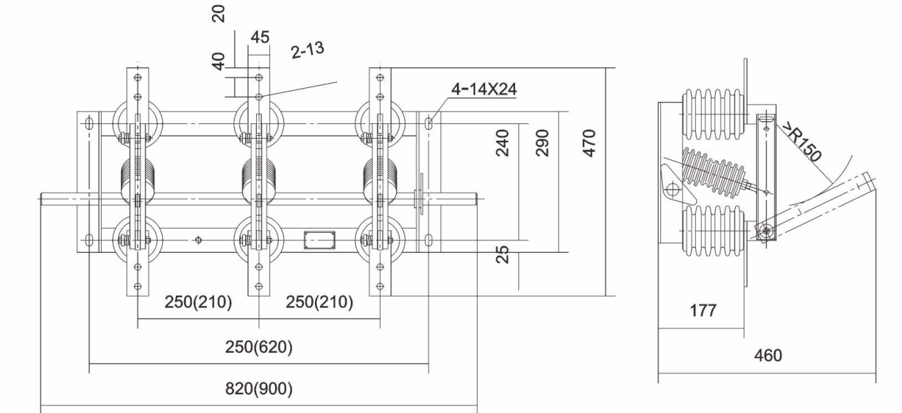 2: Ograniczenia operacyjne – wyłącznika nie można używać pod obciążeniem; nie należy go używać do przerywania lub zamykania prądów obciążenia lub prądów zwarciowych. Rozłączniki wyposażone w komorę gaszenia łuku mogą pracować przy małych obciążeniach i nieobciążonych liniach.