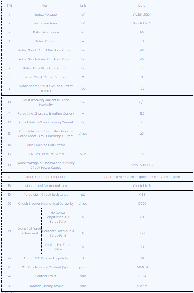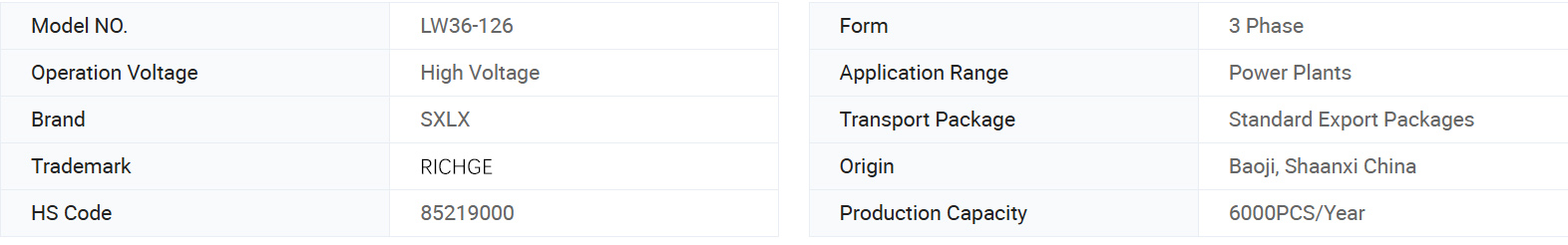 Ten produkt wykorzystuje gaz SF6 jako podłoże gaśnicze, jak i izolacyjne. Jest wyposażony w najnowszą samooczepiętą technologię gaśniczą ARC i ma nowy wiosenny mechanizm. LW36-126/3150-40 oferuje długą żywotność elektryczną, niski wysiłek operacyjny, niski hałas i wysoką niezawodność, co czyni go najbardziej niezawodnym wyborem dla obszarów na dużej wysokości lub systemów zasilania 132 kV. Może również zastąpić importowane produkty tego samego typu.