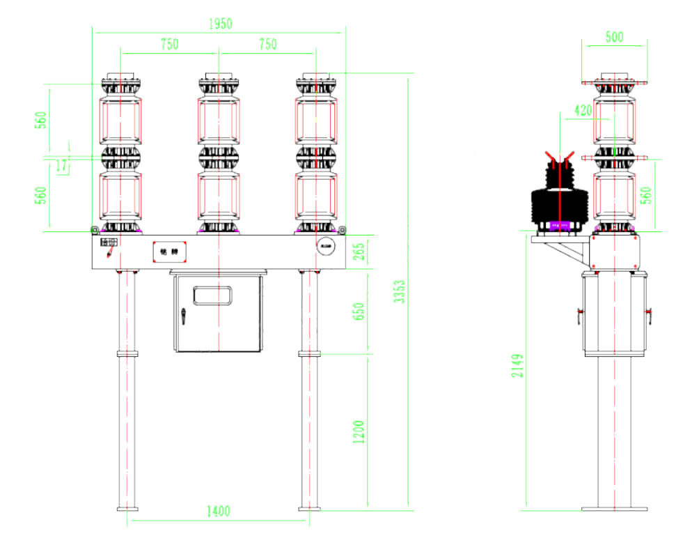 Produkt ma doskonałą wydajność zerwania, wykorzystuje komorę gaszenia łuku typu powietrza ciśnieniowego, żywotność elektryczna jest długa, nie zastępuje gazu heksaklorydowego siarki, niezawodność mechaniczna jest wysoka, żywotność mechaniczna jest długa, może często działać; Każdy zestaw może być wyposażony w 6-12 aktualnych transformatorów dla wyboru użytkownika. Ten produkt przyjmuje nowy miernik gęstości wskaźnika MKZ SF6, na odczyt manometru nie ma wpływu zmiana temperatury, łatwa w użyciu.
