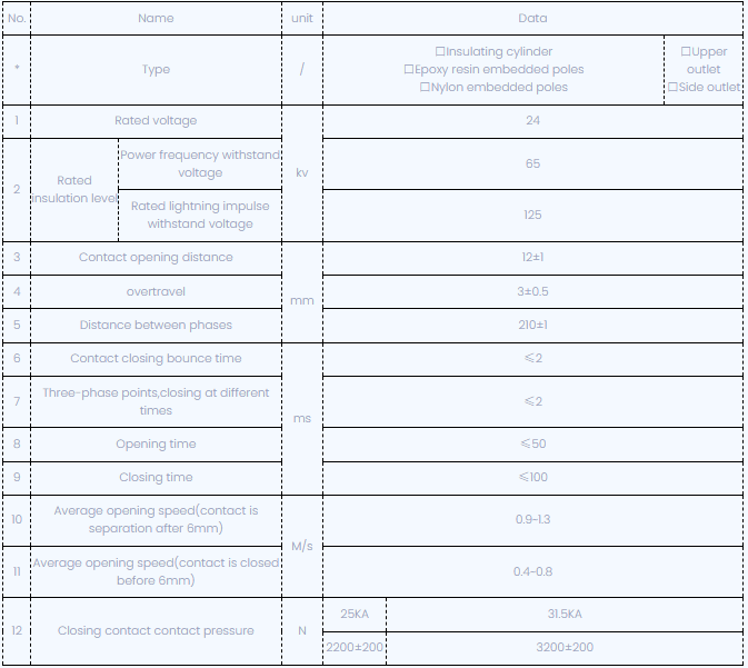 Mechanizm działania zlewki obwodu próżniowego montowanego bocznego VBI-24 jest używana sprężyna do magazynowania energii, którą można obsługiwać na dwa sposoby, ręczne lub elektryczne. Charakterystyka są zgodne z GB1984-89, JB3855-96<10kv Indoor High Voltage Vacuum Circuit Breaker General Technical Specifications>, Odpowiednie przepisy standardu IEC56.