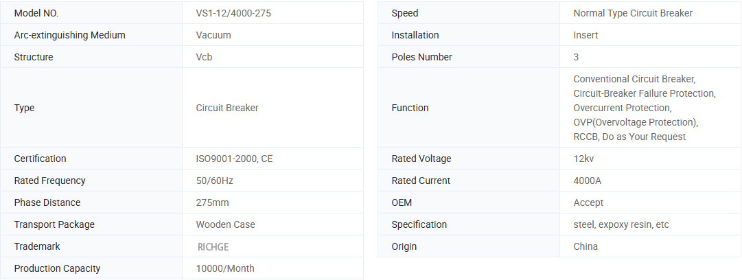 Wyłącznik próżniowy typu VS1-12 jest rodzajem urządzenia do przełącznika wysokiego napięcia, które jest używane w trójfazowym systemie zasilania AC o częstotliwości 50 Hz, napięcie znamionowe 12KV jest jednostką ochronną i sterującą. Ze względu na specjalną przewagę wyłącznika próżniowego, szczególnie odpowiedni do zastosowań, które wymagają częstej operacji przy znamionowym prądu roboczym lub wielu otwartych lokalizacji prądu prądu. Jest to szczególnie odpowiednie do miejsca wymagającego częstych operacji.
