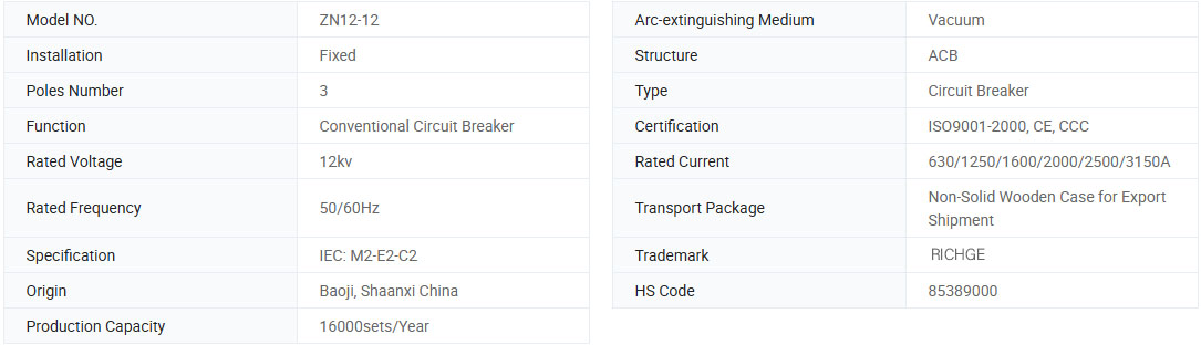 W wyłącznikach próżniowych z serii Zn12 są wewnętrznym urządzeniem rozdzielniczym o wysokim napięciu z napięciami znamionowymi 12KV, 24KV i 40,5 kV i trójfazowymi AC 50 Hz. Jest to produkt krajowy opracowany przez wprowadzenie niemieckiej technologii Siemens 3AF. Mechanizm operacyjny wyłącznika to sprężynowy typ magazynowania energii, który może być obsługiwany przez AC lub DC lub ręcznie. Breaker ma prostą strukturę, silną pojemność zerwania, długą żywotność usług i pełne funkcje operacyjne. I nie ma niebezpieczeństwa wybuchu, a konserwacja jest prosta. Jest odpowiedni do przełącznika sterowania lub ochrony systemów transmisji i dystrybucji zasilania, takich jak elektrownie, podstacje oraz przedsiębiorstwa przemysłowe i wydobywcze, szczególnie odpowiednie do rozbicia ważnych obciążeń i częstych miejsc pracy. Forma instalacyjna wyłącznika w szafce przełącznika może być typem stałym lub wyłącznikiem typu wycofywanego. Produkt ten jest zgodny z odpowiednimi standardami, takimi jak GB1984, JB3855 i IEC62271-100 „Wyłącznik AC High Voltage AC”.