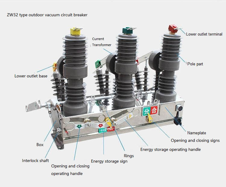 ZW32-12 Outdoor Breaker obwód próżniowy (zwany dalej wyłącznikiem obwodu) to sprzęt do dystrybucji energii zewnętrznej o napięciu o mocy 12 kV i trzyfazowej AC 50 Hz. Służy głównie do przerwania i zamykania prądu obciążenia, prądu przeciążenia i prądu zwarciowego w systemie zasilania. Jest odpowiedni do ochrony i kontroli w systemach podstacji podstacji oraz przedsiębiorstw przemysłowych i górniczych oraz miejsc, w których często działają wiejskie sieci energetyczne.