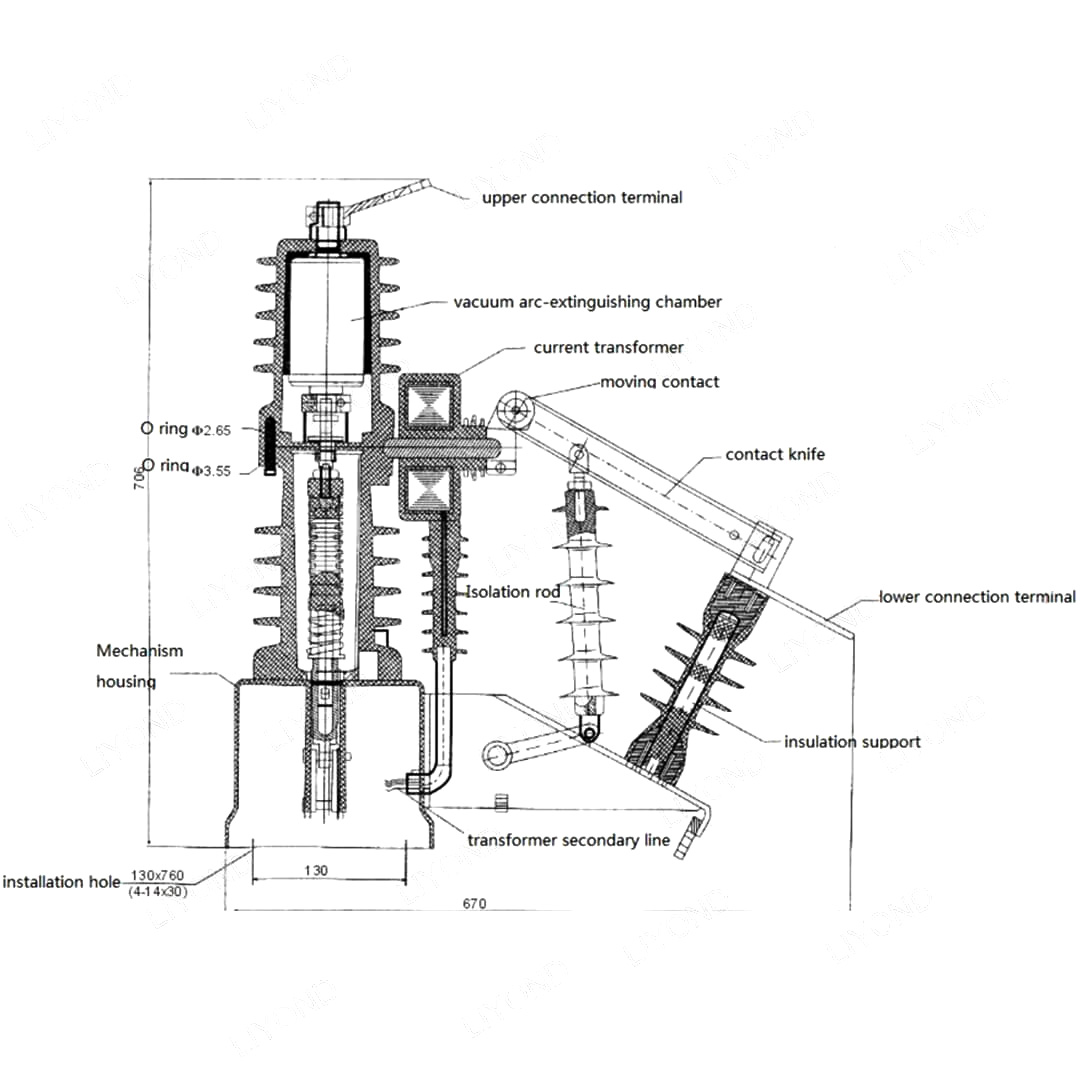 4. Mechanizm operacyjny przyjmuje zminiaturyzowany sprężynowy mechanizm operacyjny, moc magazynowania energii jest niewielka, a zużycie energii otwierania i zamykania jest niskie; Przekładnia mechanizmu przyjmuje tryb bezpośredniej transmisji, liczba części jest niewielka, a niezawodność jest wysoka. Mechanizm działający jest umieszczany w zamkniętym mechanizmie, co rozwiązuje problem korozji mechanizmu operacyjnego i poprawia niezawodność mechanizmu.